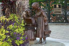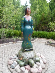 Lovely sculptures inhabit the property, none of which were probably there when the sisters lived there. One is a sculpture of the two of them as teens in the “Sisters Garden” which is meant to look like a miniature farm. The art piece which struck me the oddest was Sky Woman on a turtle. I believe there is a Native American story behind this as the woman appears to be of this background. There is an Iroquois story book you can get online called “Sky Woman and the Big Turtle.” The tribe was once found along the St. Lawrence River in New York. Perhaps the sculpture was based on this story (I didn’t find a reference to it at the park). I would love to get a smaller version of it though as it is very beautiful and unique. I am sure my friends in the Sand Play Therapists world could have a day discussing this.