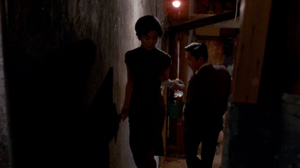 The dress that Mrs. Chan wears and there are 22 costumes, I believe, that she wears in this film (one several times) is a traditional Chinese dress called qipao (prn. key-pow). Where were they stored in that tiny apartment? While she wears it daily, with a special too high neckline, designed to accentuate her already uniquely Amazonian stature, this is not a typical daily dress from what I am told. It is used more as formal dress for the Opera, an elegant restaurant, or some other dressy affair. Yet, in this film, it is worn to the office, to a diner, and to any other occasion. On top of this, she also had her hair coiffed in a bouffant style of the 60’s, that my mother and her friends only used for the same elegant affairs and not for the office.